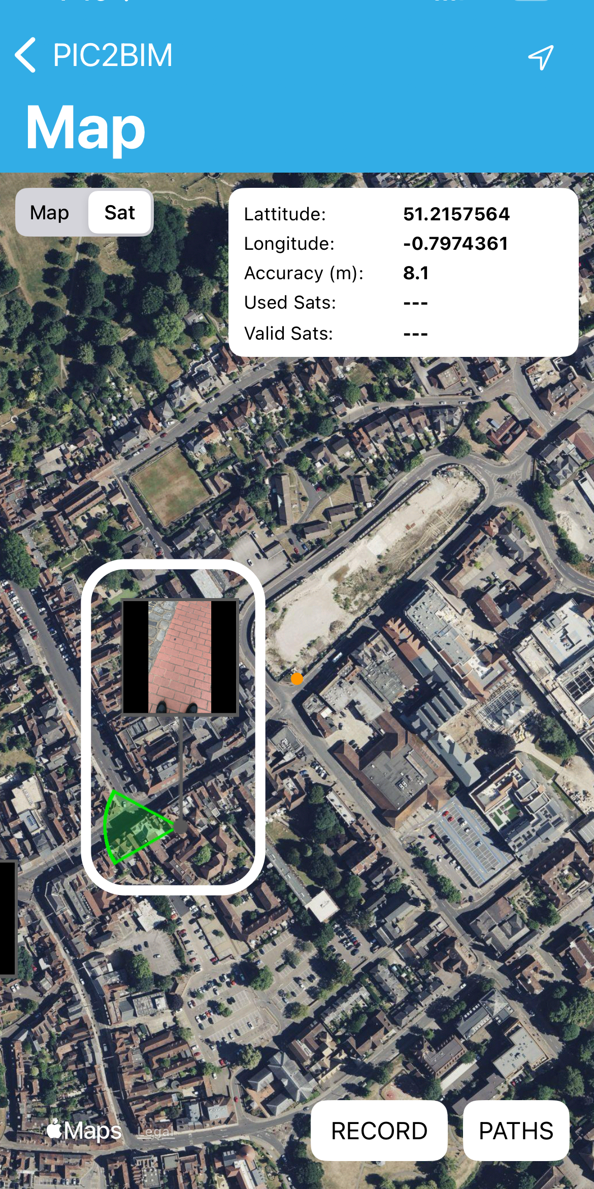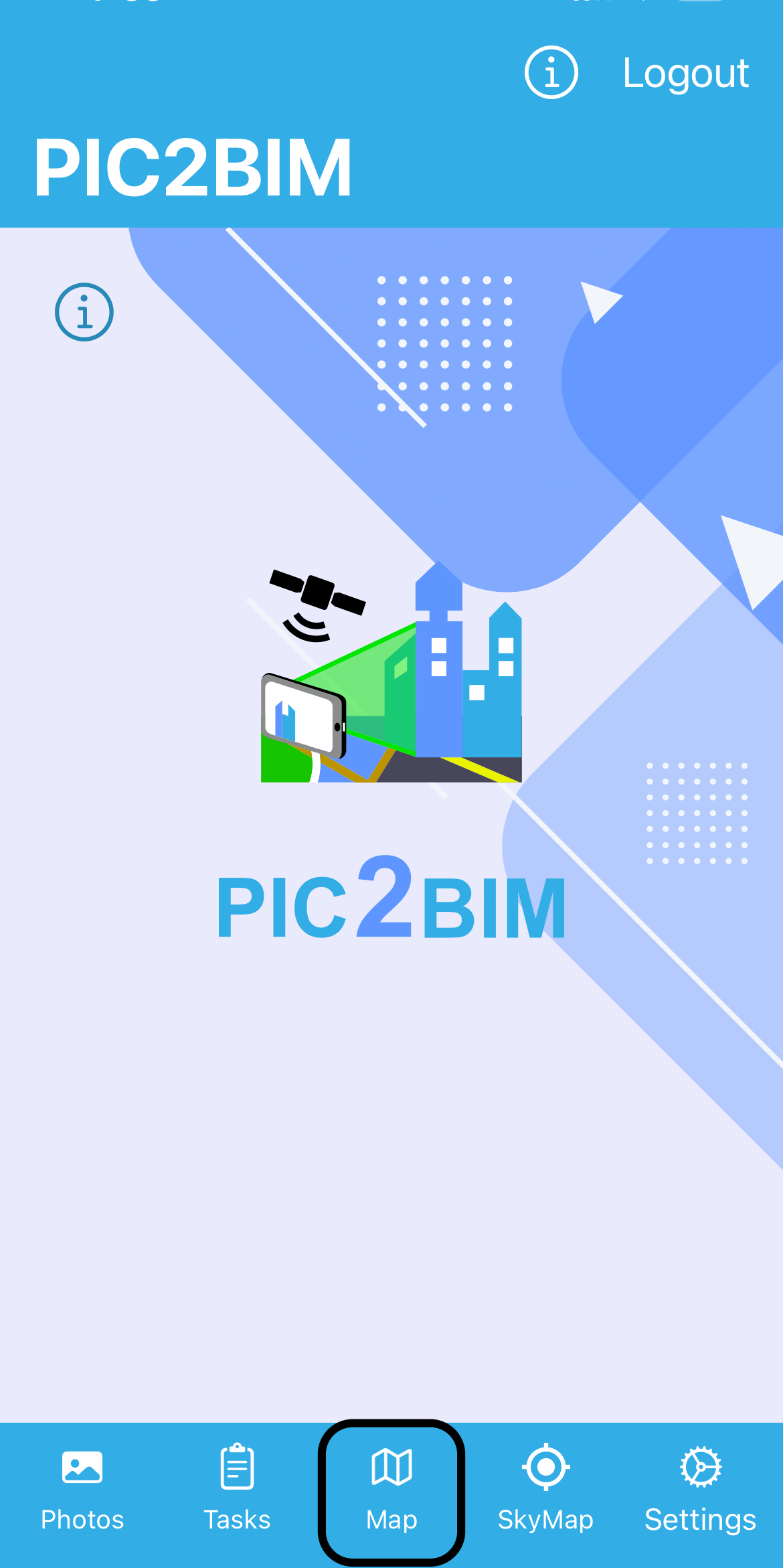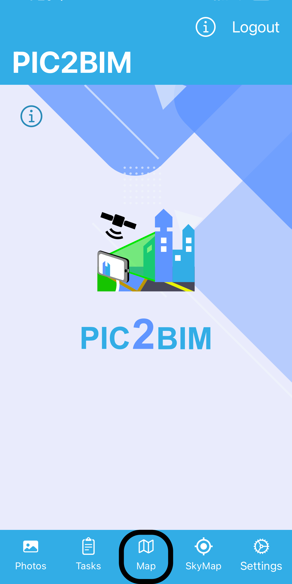 Make sure to grant permissions to access the device’s location. For the first login, request a username and password at https://pic2bim.co.uk/ or use the demo credentials (demo/demo). After logging in once, your credentials will be stored on the device for future use.