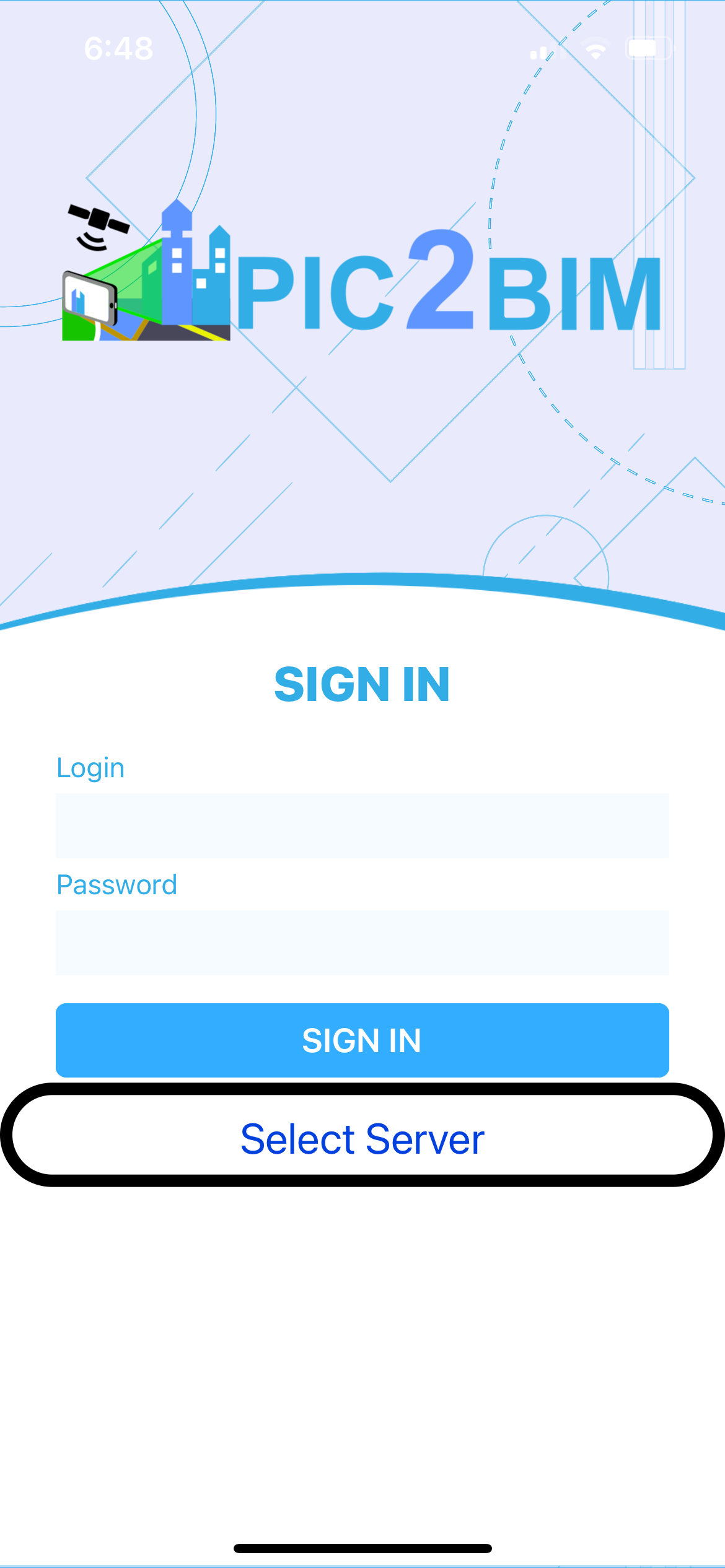 If you need to connect to a custom server, tap Select Server, enter the server URL (for example, http://192.168.1.xxx