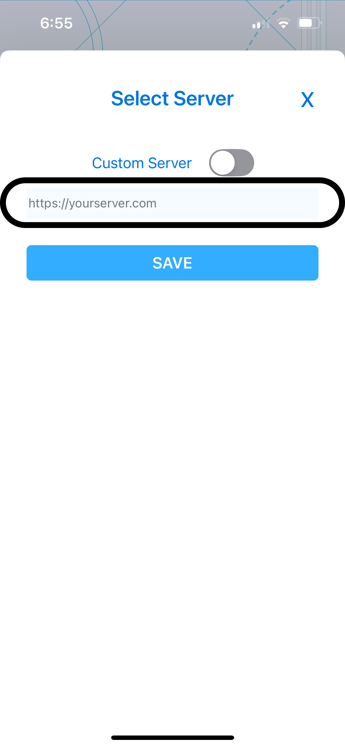 ), and tap Save. The app will then connect to this custom server instead of the default one.