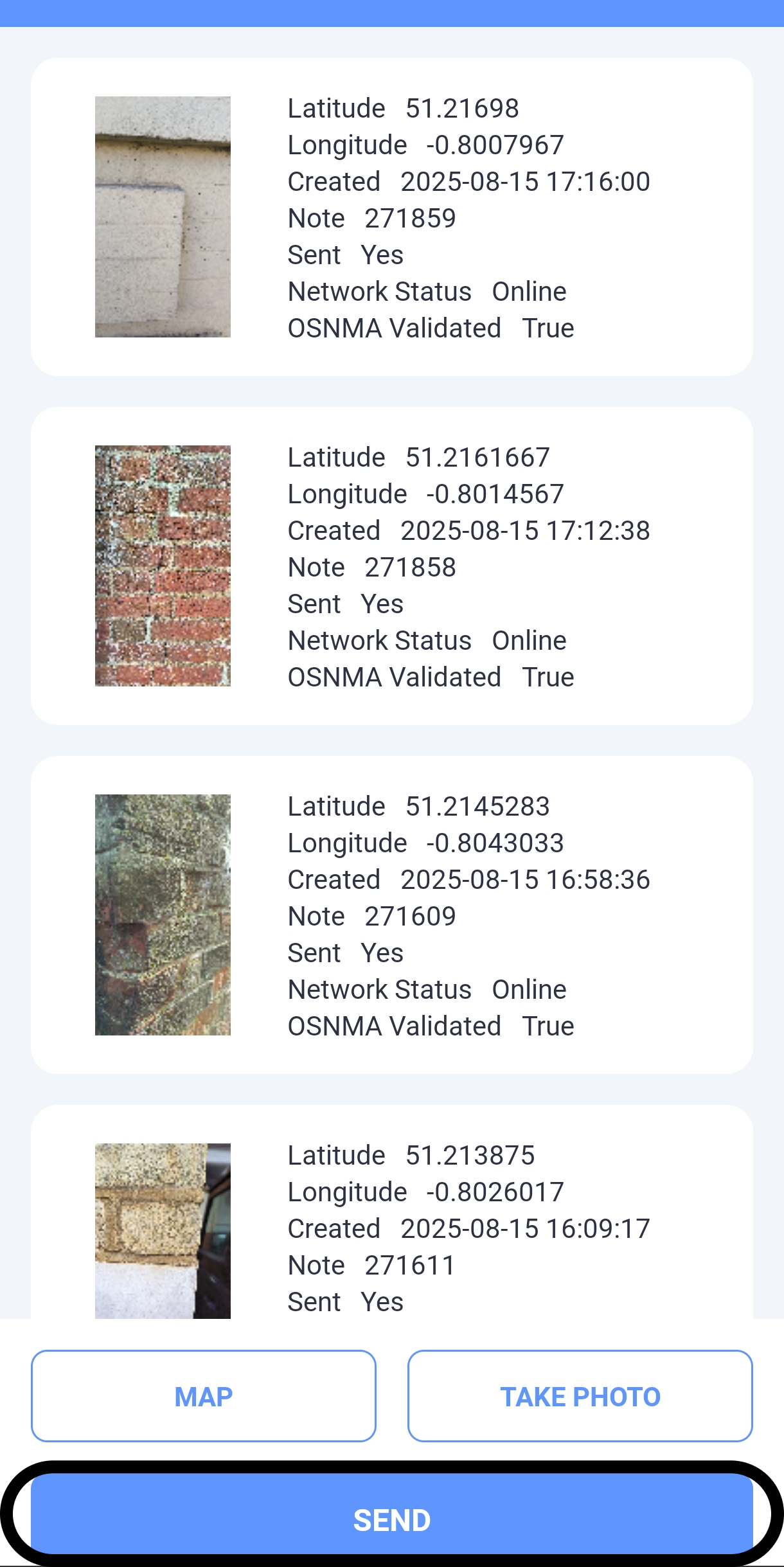 On both Android and iOS, tap SEND to upload your photos to the server.
