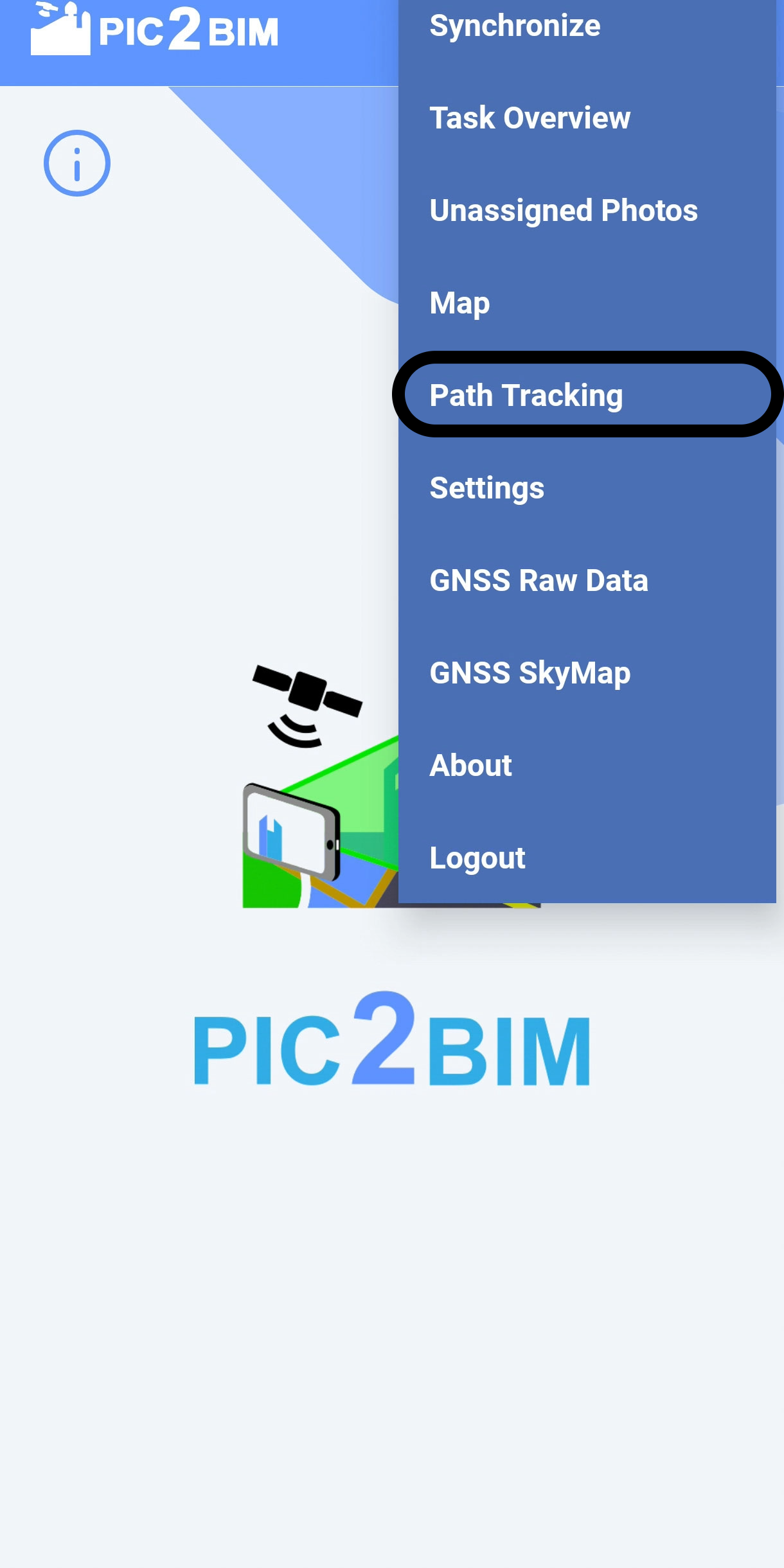 Click on Path Tracking. Choose to either record a new path or browse previously recorded paths, which can be sent to server or you can export to a KML file.