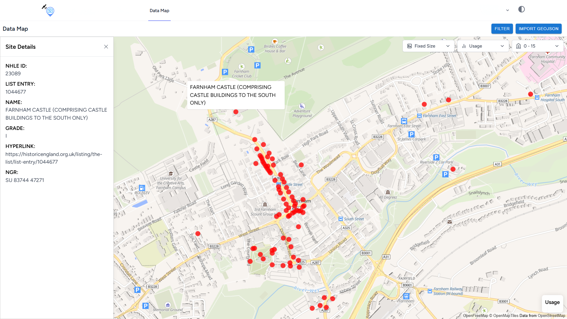 - Map Views – Switch between building-level, site-level, and NHLE (heritage listing) data overlays.