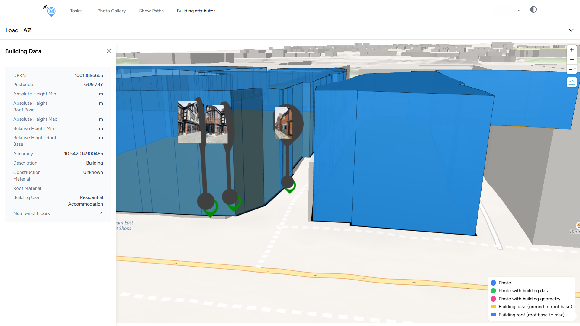 Why it matters: By linking every photo to its building footprint, the web console gives you a project-wide perspective. This makes it easier to manage assets, track progress, and ensure data integrity across your team.